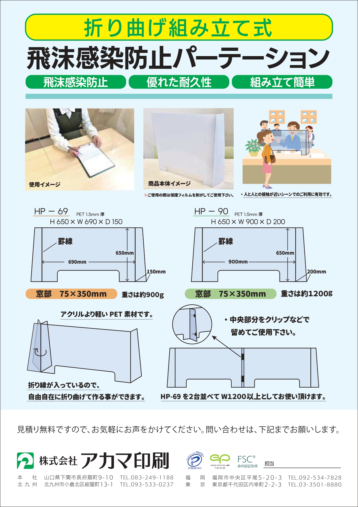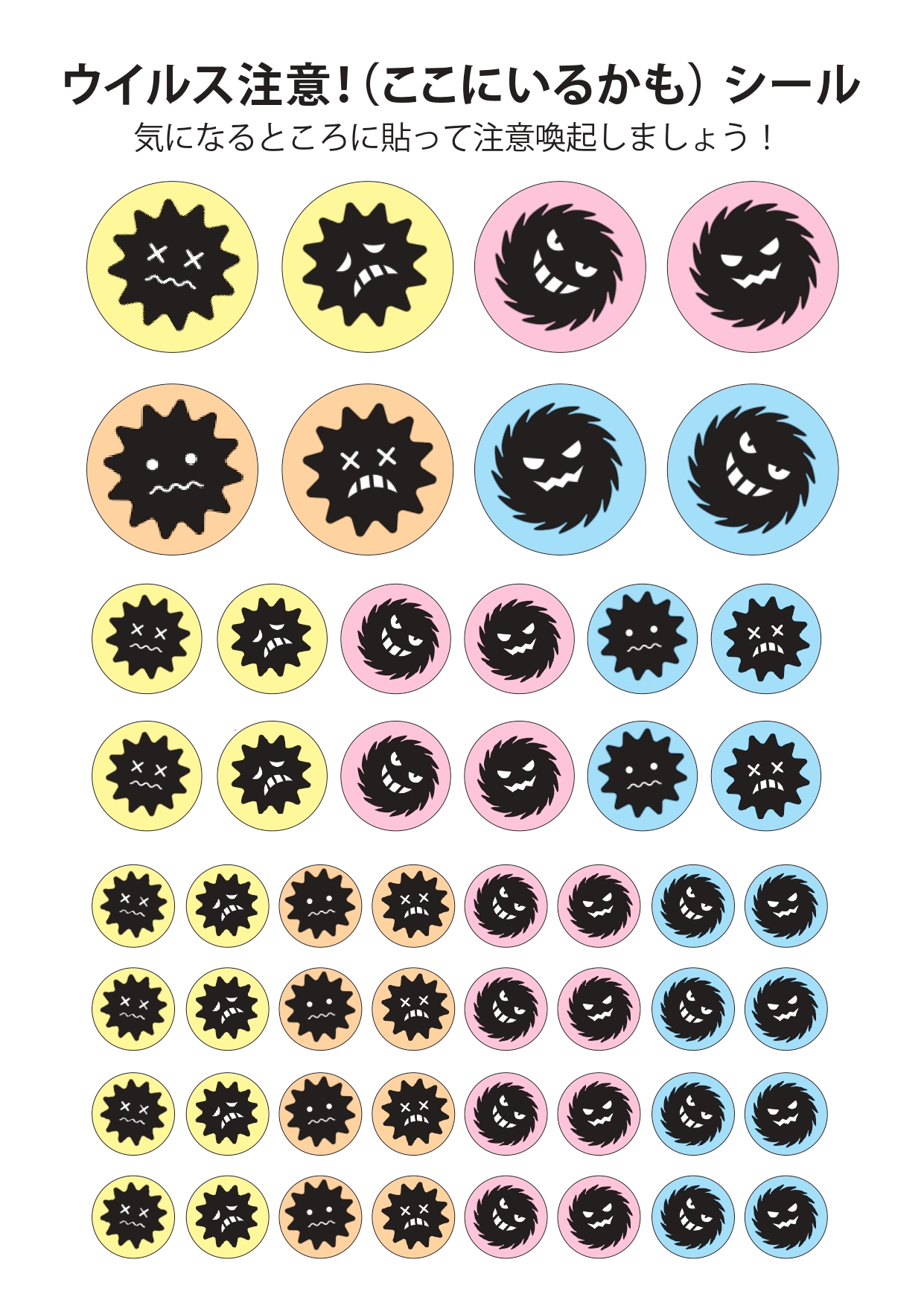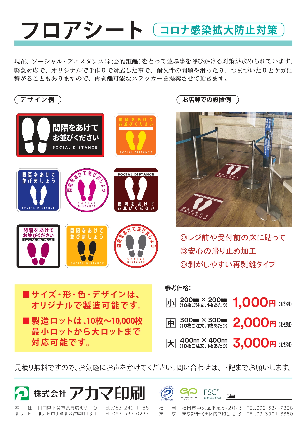ダウンロード コロナウイルス支援ツール 新型コロナウイルス対策支援ツール アカマ印刷で販売中の新型コロナウイルス対策支援ツールをご紹介します。 弊社製品が少しでも感染拡大防止のお役に立てれば幸いです。 オリジナルのデザイン作成から対応可能です。販促品や販売用としてご利用頂けます。 ※画像クリックで商品紹介チラシのPDFが開きます。 コロナウイルス警戒用シール ドアノブやスイッチ等に貼って注意喚起していただくためのシールです。 ※下記画像をクリックするとPDF版をご覧いただけますので、ダウンロードをしてご利用ください。 ※PDFはA4サイズに最適化されております。 コロナウイルス対策用ポスター 新型コロナウイルス災禍の影響を受けられている小売店、飲食店をはじめとする全ての業種のみなさまに心よりお見舞い申し上げます。 アカマ印刷ではこの状況を踏まえ、何かみなさまのお役に立てないかと考え、ご自由にお使いいただける「新型コロナウイルス感染症対策ポスター」を制作し、PDFデータの無料ダウンロードを開始することにいたしました。 ご自由にプリントアウトして、入口・店内など、お客様の目に触れる場所に掲示して、ご利用いただければ幸いです。 感染拡大防止への取り組みを行っていることをお客様にお知らせください。 ※下記画像をクリックするとPDF版をご覧いただけますので、ダウンロードをしてご利用ください。 ※PDFはA3サイズに最適化されております。