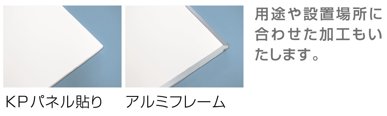 展示説明パネルなどに最適なアルミフレーム付パネル。ショウウィンドウ内などの大型パネルもございます。