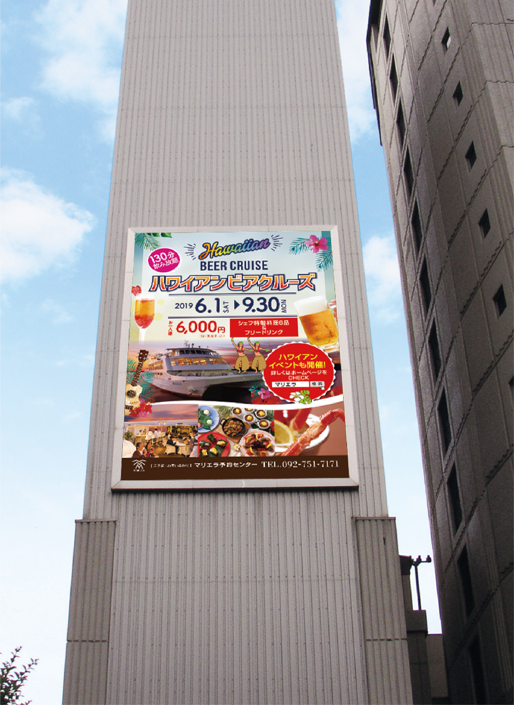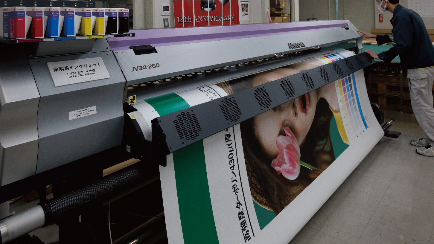 超大型出力機による耐候性に優れた大型ポスターを1枚から出力が可能となり、無駄な経費がかかりません。