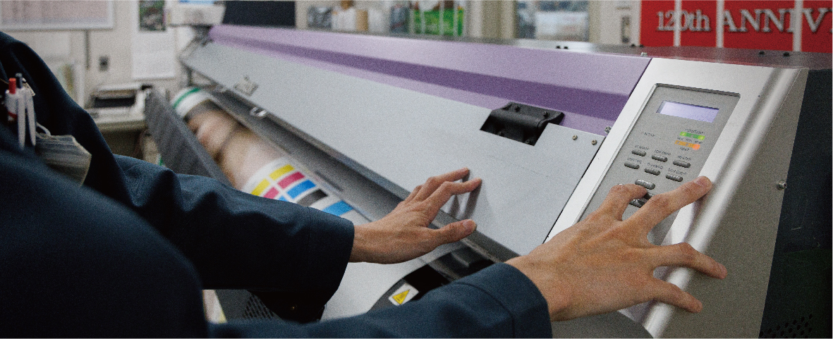 部署紹介 インクジェット課 大型店舗看板や商業ビルの懸垂幕など施工まで一貫受注で19年の実績 インクジェット課 印刷業では珍しく、ポスターが主体ではなく、クレーン車を使ったビル看板の制作・施工や商業施設の壁紙・フォトスポット、映画の告知やアイドルのイベント告知・等身大パネルなど様々な依頼を受け、紙の印刷物とクロスした製品をクライアントに届ける部署として業務を行っています。 クライアントからの依頼の中には「このようなことをやりたいのだけど…」といった漠然としたものがあり、依頼に応えることができた時が一番やりがいを感じます。
